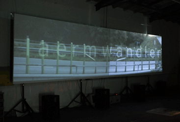 die besucher betreten einen abgedunkelten raum mit einer 8x2m grossen leinwand; auf dieser wird der straßenverkehr der wilhelmsburger reichsstraße in 1:1 mit hilfe von zwei beamern projiziert. parallel dazu wird der authentische verkehrslärm über 4 lautsprecher, die sich hinter der leinwand befinden, als dynamische geräuschkulisse wiedergegeben. zu hören und sehen sind unterschiedliche szenarien des verkehrsaufkommens (zähflüssiger berufsverkehr morgens, fliesender verkehr tagsüber, feierabendverkehr, vereinzelte autos nachts, stau, ...)